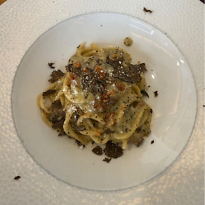 That afternoon was spent with a local family—a mother and daughter, to be exact—during our Home-Hosted Lunch. With just six of our fellow travelers, we gathered at their patio table for a three-hour meal in the garden. A smorgasbord of tiny bites graced our plates: a slice of zucchini galette, eggplant lasagna, pâté, and more lardo, of course. We went around the table, sharing family traditions as we washed it all down with tiramisu. The best part? Their secret family tiramisu recipe was shared with me and my mom—I just have to translate it.