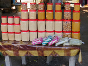 Different types of palm sugar for sale in Cambodia.