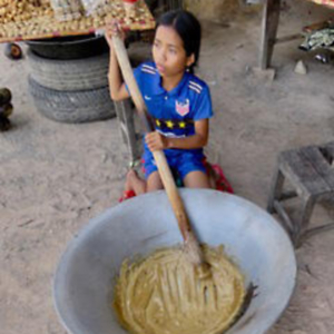 As you can see in Ray’s video, harvesting palm sugar is not for the faint of heart—but, as Ray jokes, the harvesters don’t need to set foot in a gym to maintain their physiques! Different processing methods are used to make sugar for specific cooking applications—or, as Ray happily demonstrates, to make candy in its purest form. Perhaps the most delicious use of all? Dessert. We asked Ray to share his favorites. "Jeak kteas (banana, coconut milk, and palm sugar) and nhom bangkp skar (sticky rice dough wrapped around palm sugar) are both yummy!"