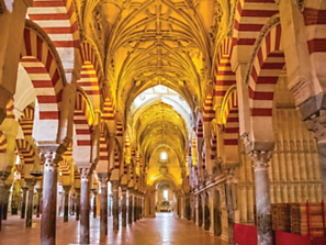 Moorish influence pervades Spain, most dramatically in the monumental Mezquita Cathedral—a mesmerizing eighth-century mosque and one of the world's largest Islamic buildings—with its Gothic Christian church, Capilla Mayor, inserted directly in its center.