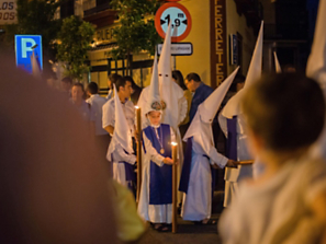 The Brotherhood of Crucifixión during a Semana Santa procession.