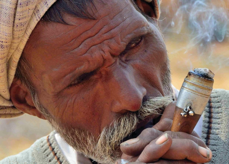 Hashish smoker at the Pushkar Camel Fair—which can be experienced on a special festival departure of our Heart of India adventure.