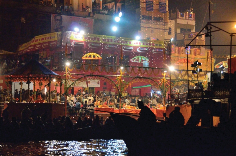 During Diwali in Varanasi, a diya-lit boat procession illuminates the Ganges—a sacred river travelers can visit during O.A.T.’s Heart of India adventure.