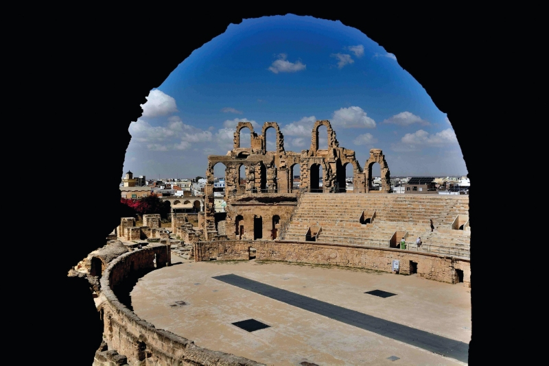 The Amphitheatre of El Djem, located in modern-day Tunisia, is a well-preserved Roman amphitheater dating back to the third century AD—and can be visited on O.A.T.’s Tunisia: From the Mediterranean to the Sahara adventure.