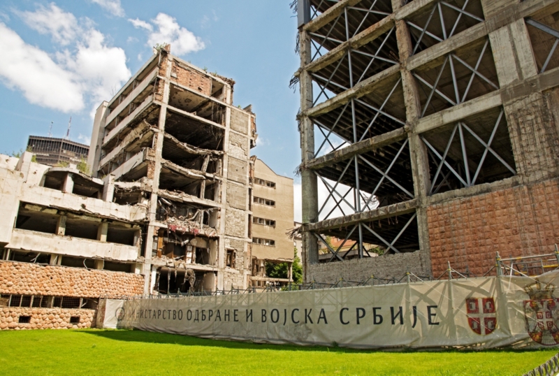 Belgrade, Serbia has maintained the Ministry of Defense buildings as a commemorative of the NATO bombing in 1999.