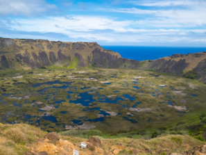 A freshwater lake formed in the crater of Rano Kao Volcano.