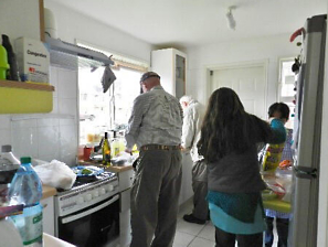 The group busied themselves preparing an American meal for their hosts.