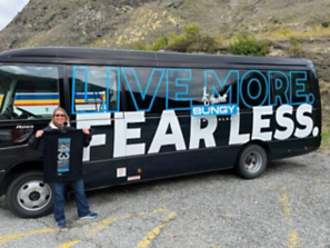 Amanda before taking the plunge off the Kawarau Bridge in Arrowtown, New Zealand.