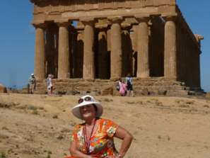 Bonnie takes a moment to enjoy visiting one of the Greek temples in the Valley of the Temples, outside Agrigento.