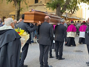 Later in the afternoon we are walking along Republic St. and see large crowds of people ahead and the street is blocked off with a long line of black cars. As we come closer, we see one vehicle is a hearse with fresh flowers attached to the front and top. The rear door is opened up. Then we hear sad music being played. I kept thinking of the word "dirge". Many priests and bishops are lined up. A very plain wooden coffin is taken out of the hearse and carried by four men.