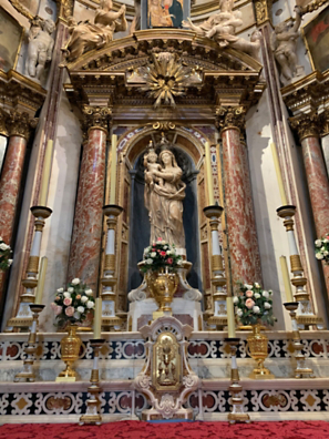 At this golden altar, women who hope to have children come and pray to the statue of the Virgin of the Milk.