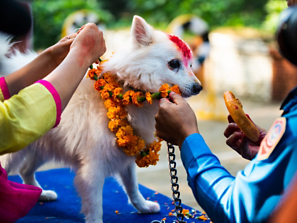 A dog being honored during Kukur Tihar.