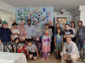 In addition to the symbolic bell ringing, Narjes (6) and Caleb (14) placed a painted palm print on the cancer-free tree. Residents, families, staff, and volunteers were in attendance to show their support. Our three associates brought and served dinner, gave Caleb and Narjes gifts for their hard work, and socialized with the kids and their families staying at Christopher's Haven.