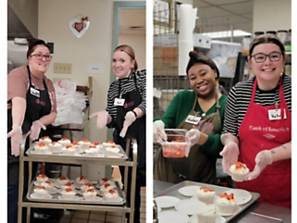 Our team of associates volunteered on the morning shift, during which they sorted food donations and then headed into the kitchen to prep lunch and dinner for that day.