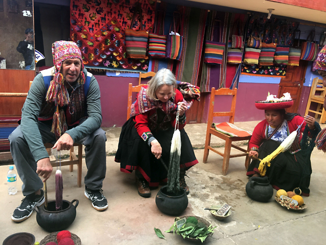 In all of our interactions with the people of Peru, I could feel their connection to their Inca heritage. I loved the market culture—and not just for the shopping. One in particular gave us the opportunity to learn about Quechua courtship traditions. Every week, young people get all dressed up and go to the market to see and be seen. For those looking for love, there’s a system to determine who’s available: a woman wearing two braids tied together is married, whereas one or many braids means she’s single. The more braids you have, the more healthy and attractive you are—and the women have beautiful, thick hair, so some of them have quite a few.