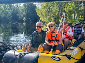 Bob and Sally Dubois, 57-time travelers from Silver Lake, NH, rafting during Jewels of Bohemia.