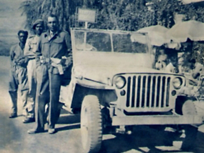 Aditya’s grandfather during his time in the service, standing alongside a Willys Jeep.