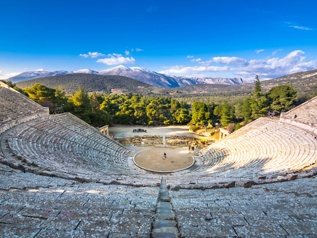 The ancient Theater of Epidaurus showcases perfect acoustics in this UNESCO World Heritage Site—a highlight of our New! Hidden Harbors of the Aegean: From Athens to the Greek Islands adventure.