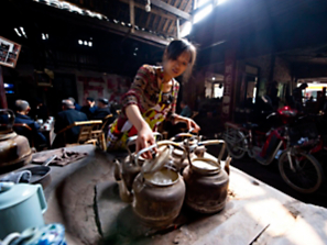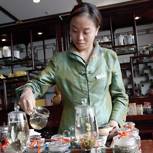 A tea master prepares herbal brews in old Shanghai.