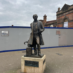A statue of Thomas Cook, pioneer of group travel, in Leicester, England.