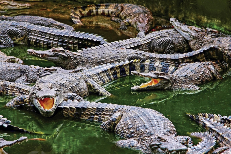 If they look like living dinosaurs, there’s a reason—modern crocodiles are members of the Crocodilia family and haven’t changed much in about 100 million years. Today they dwell in the lakes, rivers, and wetlands of Africa, Asia, Australia, and the Americas. A group of these toothy predators is called a "float."