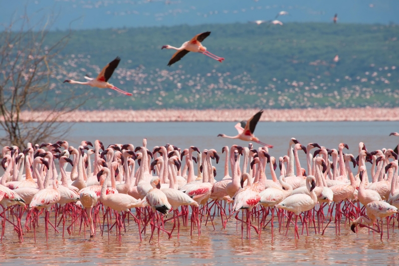 With their vibrant pink plumage and distinctive curved necks, flamingos are among the most recognizable birds in the world. Their colorful appearance comes from the carotenoid-rich algae and small crustaceans they eat. These social birds often gather in large groups, creating a spectacular sight known as a "flamboyance" of flamingos.