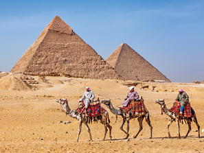 Bedouins—Arabic-speaking desert nomads of the Middle East—can often be seen riding on camels around the Pyramids of Giza.
