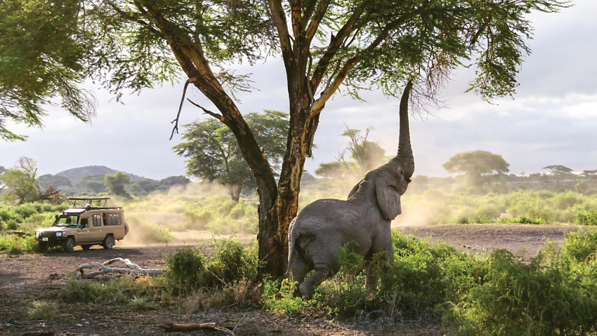 Comments from the judges: We love how this shot is framed to include the safari vehicle and the lighting is beautiful—it looks like a painting. The dust kicked up in the background adds to the overall feeling.