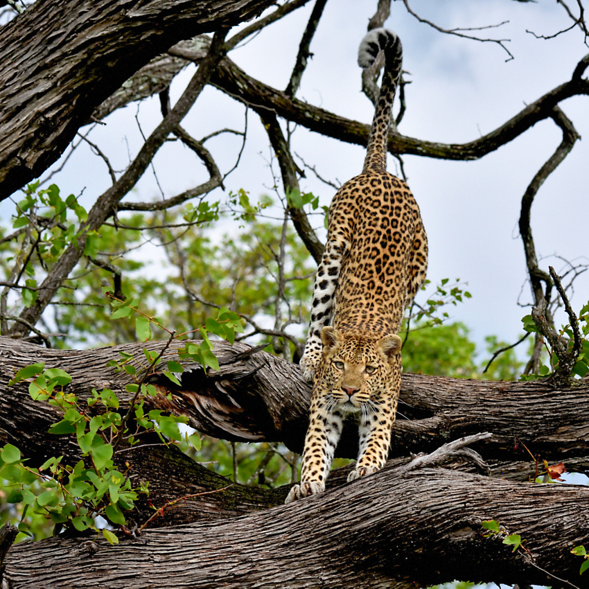Comments from the judges: This photograph has a wonderful, textural feel, as the leopard and his curving tail mimic the lines of the tree branches around him. It captures an interesting moment between action, as the creature readies himself to leap to the next branch. It also features a good use of negative space—while other photos may have zoomed in on the animal alone, the inclusion of the leaves and branches enhances the overall color scheme. The details are very clear and crisp.