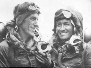 Tenzing Norgay and Edmund Hillary after successfully completing the first ascent of Mount Everest at 11.30am on May 29th, 1953.