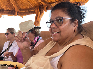 On her Ultimate Africa: Botswana, Zambia & Zimbabwe Safari adventure, Barbara embraced the local experience by trying mopane worms. While she may not have captured a photo of her own tasting moment, she made sure to document her friend's encounter with the unusual delicacy.