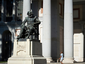 A statue of Diego Velázquez, who oversaw Pheasant Island’s meeting decorations in one of his final commissions.