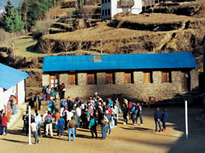 A school built by the Himalayan Trust amidst the rugged landscape of Nepal.