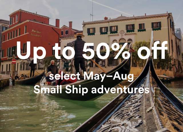 For a limited time, find yourself somewhere new with up to 50% off select May–August 2026 Small Ship Adventures.